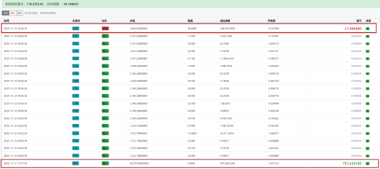 2025.11.24 This wave of ETH is long, and BTC is empty. First, we closed the BTC short order near the lowest point, and then closed the position of ETH when ETH lost a little near the highest point just now. If you close multiple ETH orders at the same time while BTC is flat, you will lose several hundred yuan. Now I have made more than 700 yuan. Closing positions unilaterally can allow orders with wrong directions to come out quickly, but it will make money instead.